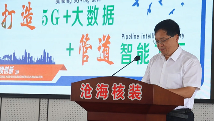 潘佳庭在致辭時指出,近年來,鹽山縣圍繞產(chǎn)業(yè)轉(zhuǎn)型升級,加快智能化生產(chǎn)管理進(jìn)程,努力推進(jìn)管道裝備產(chǎn)業(yè)向數(shù)字化轉(zhuǎn)型和智能化提升,實現(xiàn)管道裝備產(chǎn)業(yè)智能制造、智慧運行。滄海核裝備科技股份有限公司作為我縣高 端管道制造企業(yè),積極響應(yīng)政府號召,與國內(nèi)知名科研院所和運營商合作,謀劃了“5G+大數(shù)據(jù)+管道智能工廠”項目,該項目的實施將進(jìn)一步加快推動全縣工業(yè)轉(zhuǎn)型升級步伐,為鹽山經(jīng)濟社會高質(zhì)量發(fā)展注入新的活力。